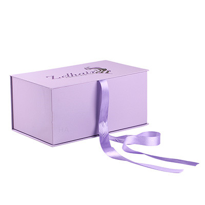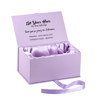 Custom Printed Purple Cardboard Magnet Gift Boxes With Ribbon For Wigs Packaging