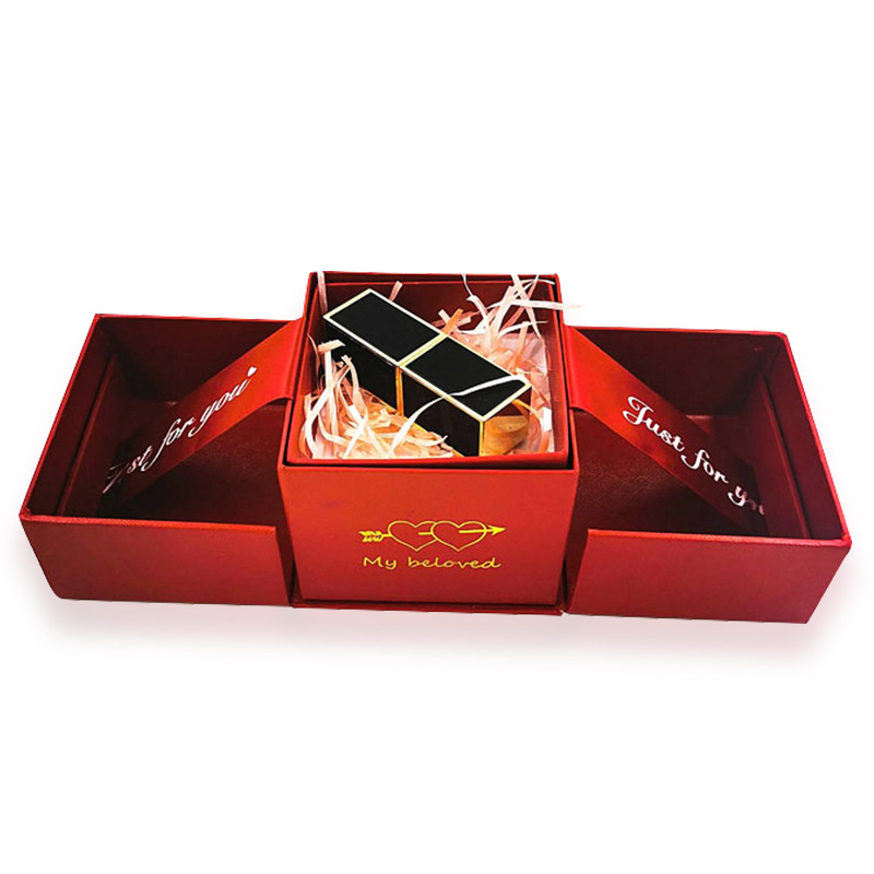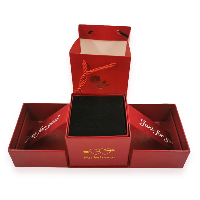 Customized Kraft Paper Cardboard Jewelry Packaging Box With Drawer And Ribbon