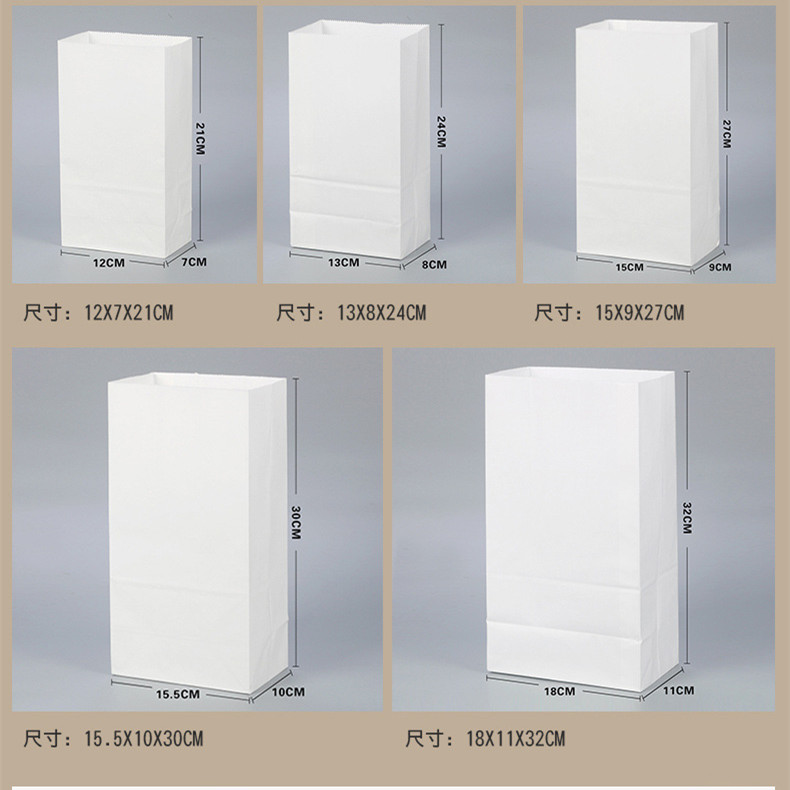 | Material | 60g food grade kraft paper, 70g food grade kraft paper, 70g food grade white kraft paper, 70g oil proof kraft paper, 90g oil proof kraft paper |