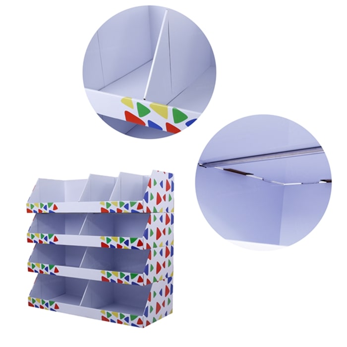The paper exhibition stand is mainly made of corrugated paper. The surface layer of paper is usually made of printable paper, on which fine patterns can be printed, such as the company’s logo, product characteristics, product promotion information, etc. Give play to creativity according to product characteristics and scope of application, and design attractive patterns and styles to make your customized paper cardboard displays stand more distinctive.