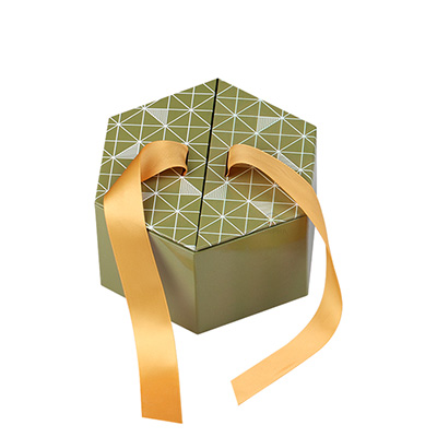 Small Green Double Open Cardboard Hexagon Box with Ribbon For Christmas Gift Packaging