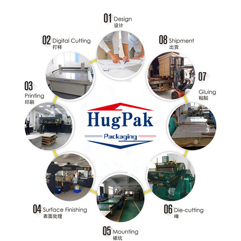 HugPak Packaging is an one stop professional packaging service provider with over 10 years paper packaging and custom printing design service. With this experience, we can produce the most beautiful, reliable, cost effective and creative packaging boxes and cardboard displays.
