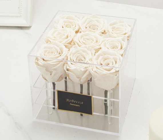 Transparent Plastic Acrylic Box Display for Preserved Flower Rose